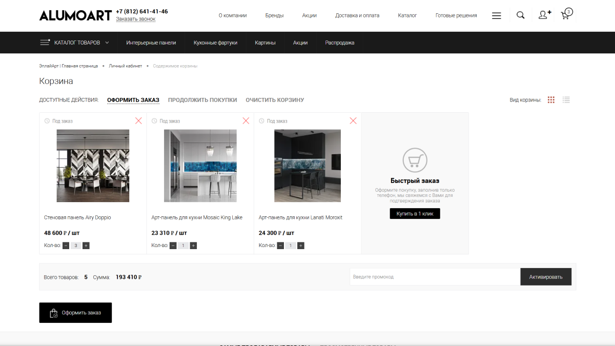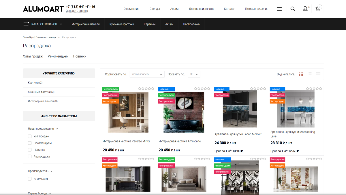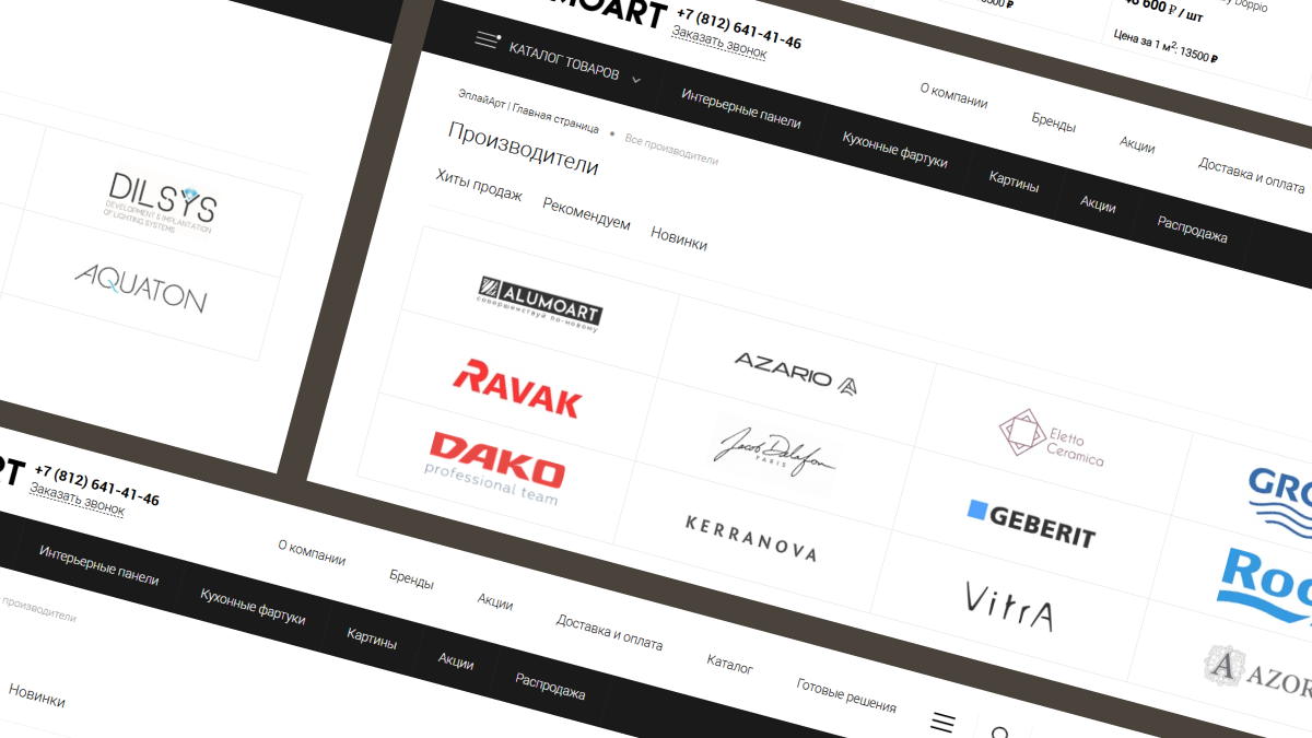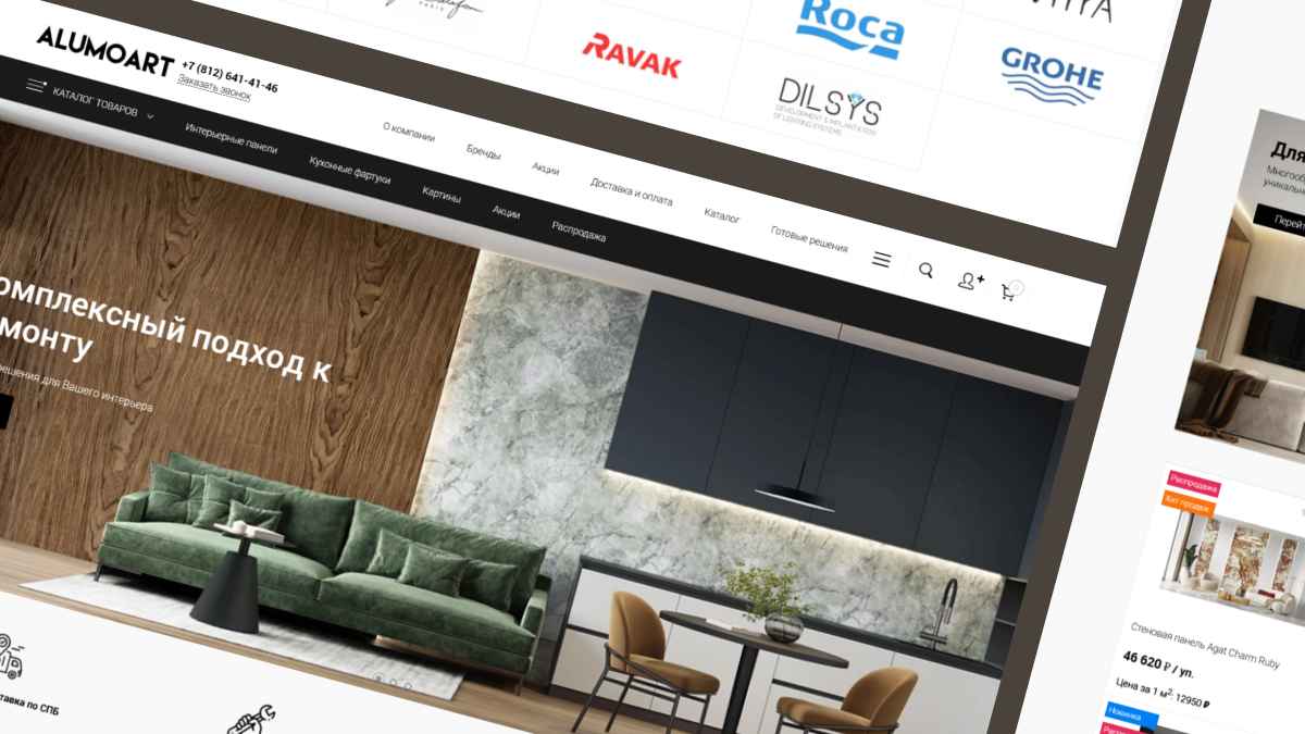 Сайт Alumoart предоставляет покупателям удобные инструменты выбора. Помимо стандартного каталога, пользователи могут ориентироваться на готовые интерьерные решения, подбирать продукцию по брендам или сразу добавлять в корзину необходимые услуги. Такой формат не только упрощает процесс покупки, но и усиливает SEO-продвижение, создавая дополнительные точки входа и расширяя охват аудитории.