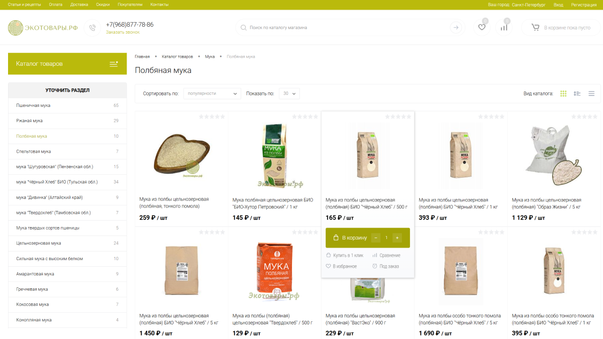 Половина трафика идёт с телефонов. Теперь на них так же удобно выбирать муку и урбеч, как с компьютера.
