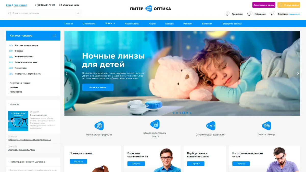 Питер Оптика: интернет-магазин оптики без тормозов и дублей