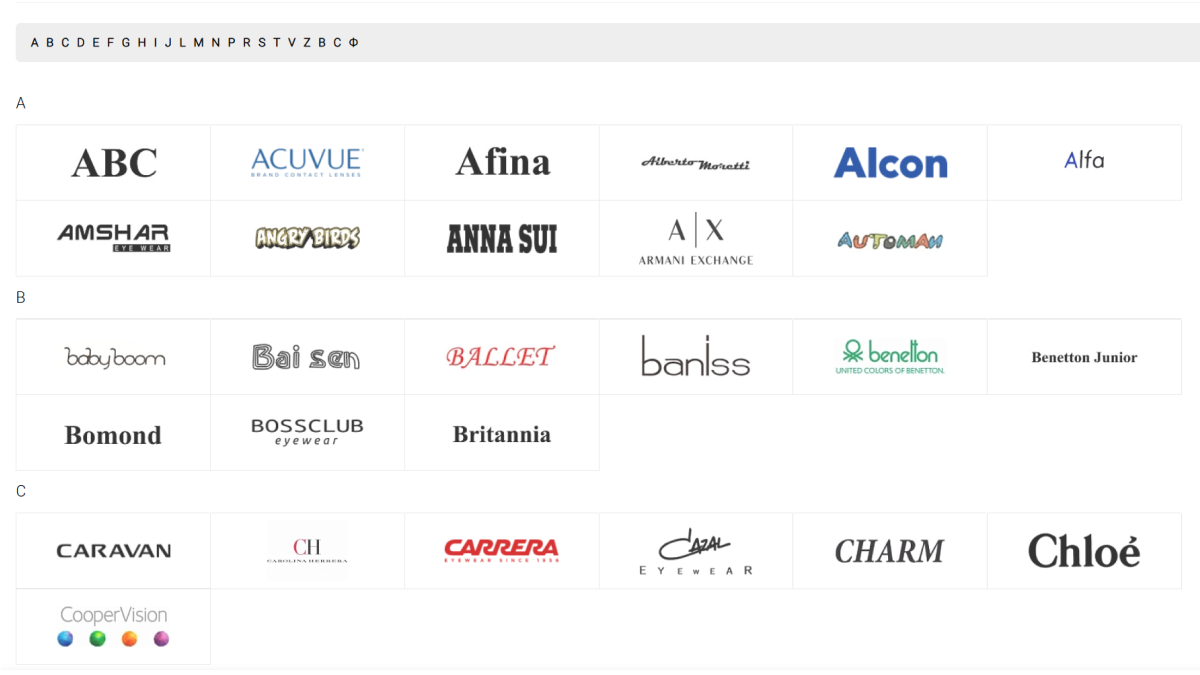 В каталоге «Питер Оптика» сотни брендов. Чтобы клиент не терялся, мы добавили сортировку по алфавиту. Теперь найти любимую марку можно за пару кликов, даже если название забылось.