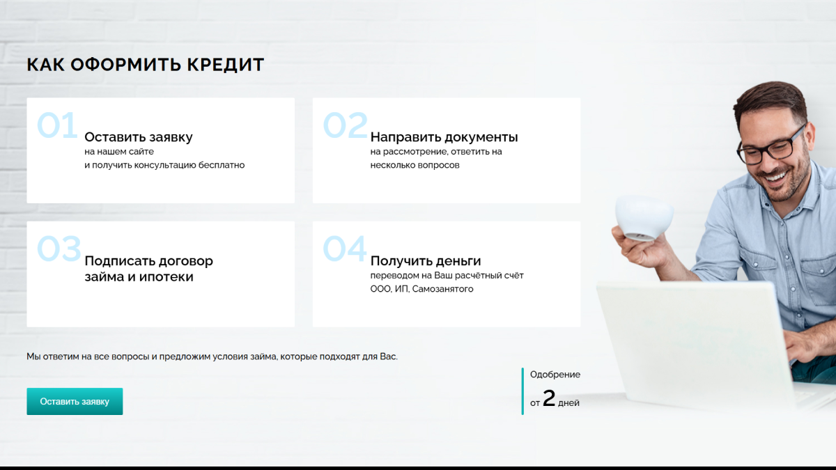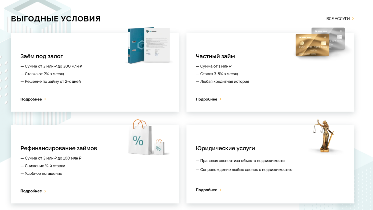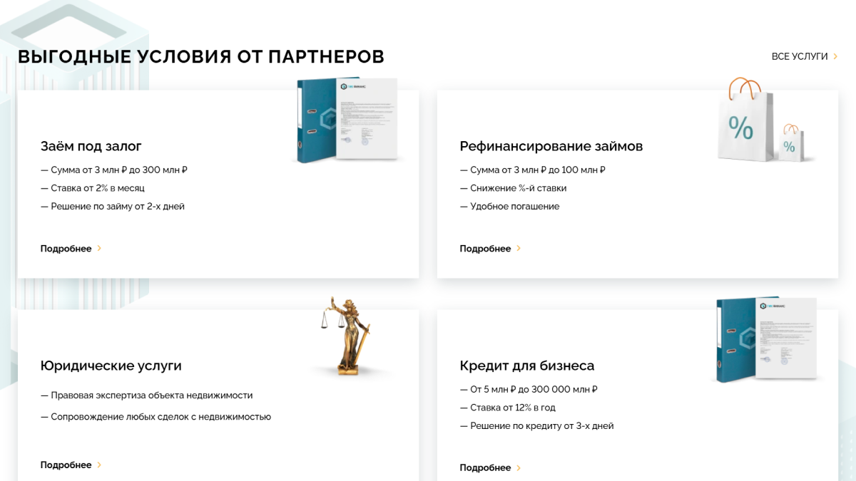 Основной задачей было превратить сайт из простой визитки в многофункциональный инструмент продаж, способный привлекать клиентов из разных сегментов — частных заёмщиков, партнёров и инвесторов — и конвертировать их в заявки.