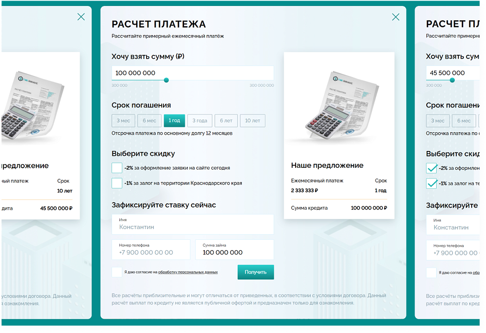 С его помощью клиенты легко рассчитывают суммы и отправляют заявку.
