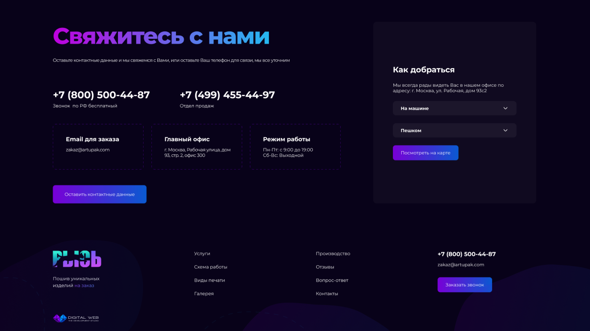 Призыв к действию встроен в ключевые точки, чтобы не терять клиента.