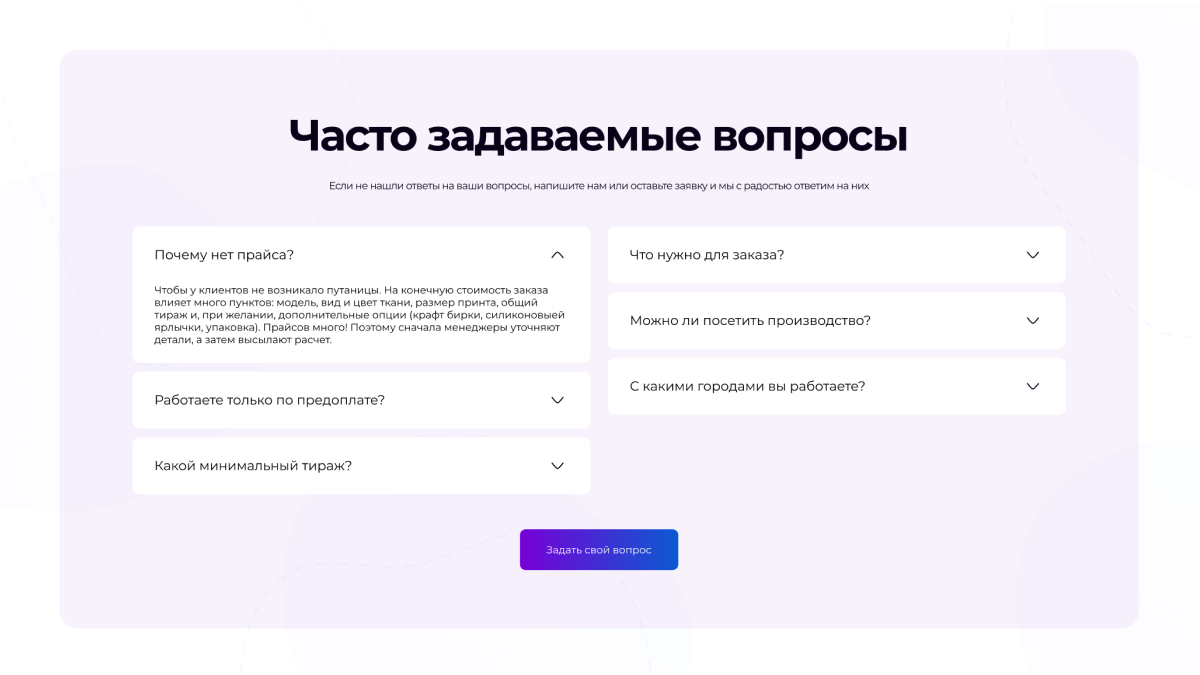 Блок «Вопрос-ответ»