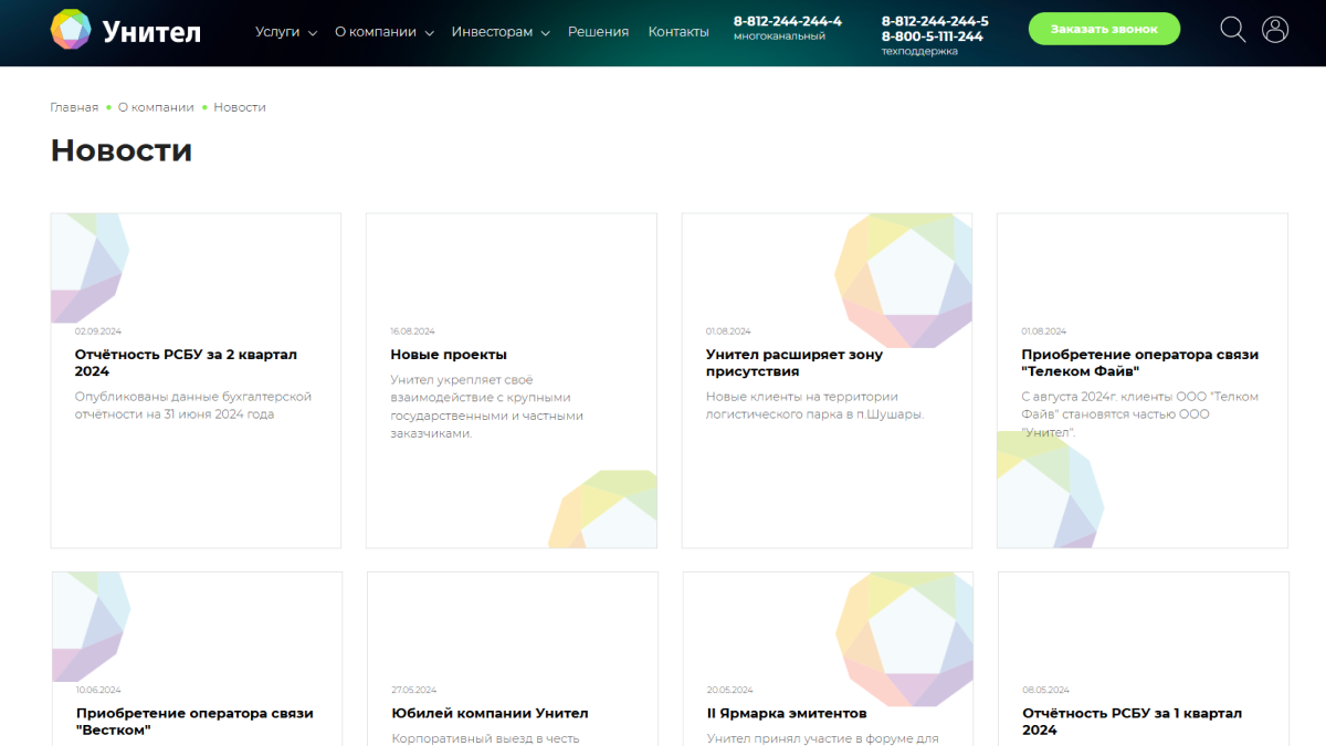После финального тестирования сайт был запущен. Команда Unitelecom получила инструмент, который легко обновлять и модернизировать, поддерживая современный облик и высокую технологичность проекта.