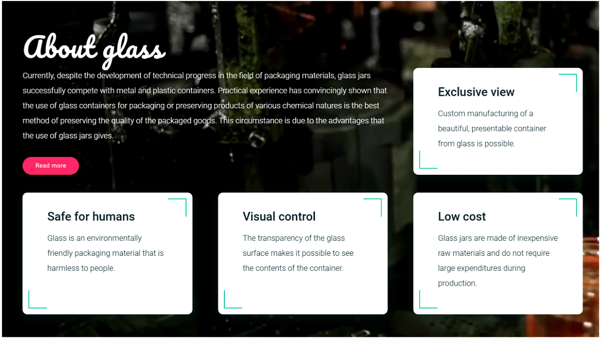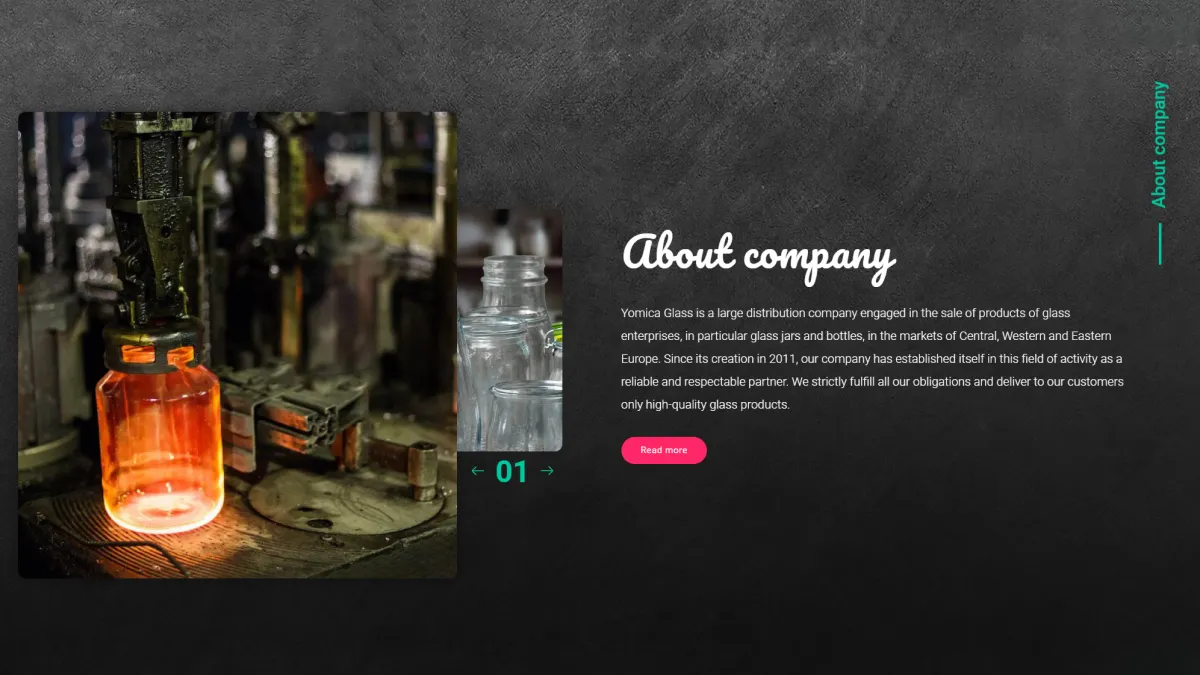 Для Yomica Glass мы создали уникальный корпоративный сайт-каталог, который не просто представляет продукцию, но и формирует эмоциональную связь с клиентами. Каждая страница продумана до мелочей: от оригинального дизайна с эффектными фонами и анимациями до лаконичного, но информативного контента. Сайт стал идеальным инструментом для продвижения бизнеса, помог компании расширить ассортимент и уверенно выйти на международные рынки. Мы доказали, что даже функциональный каталог может быть эстетичным и незабываемым.