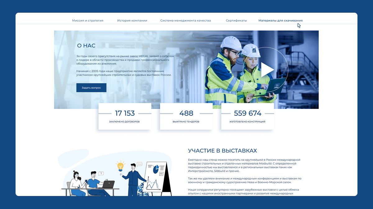 Для завода MEGAL мы разработали более 40 уникальных страниц, каждая из которых несёт ценную информацию. Таймлайны с историей компании, разделы для скачивания документов, удобная навигация и многоуровневые каталоги — всё это создаёт функциональный и информативный портал, отвечающий всем потребностям клиентов и партнёров.