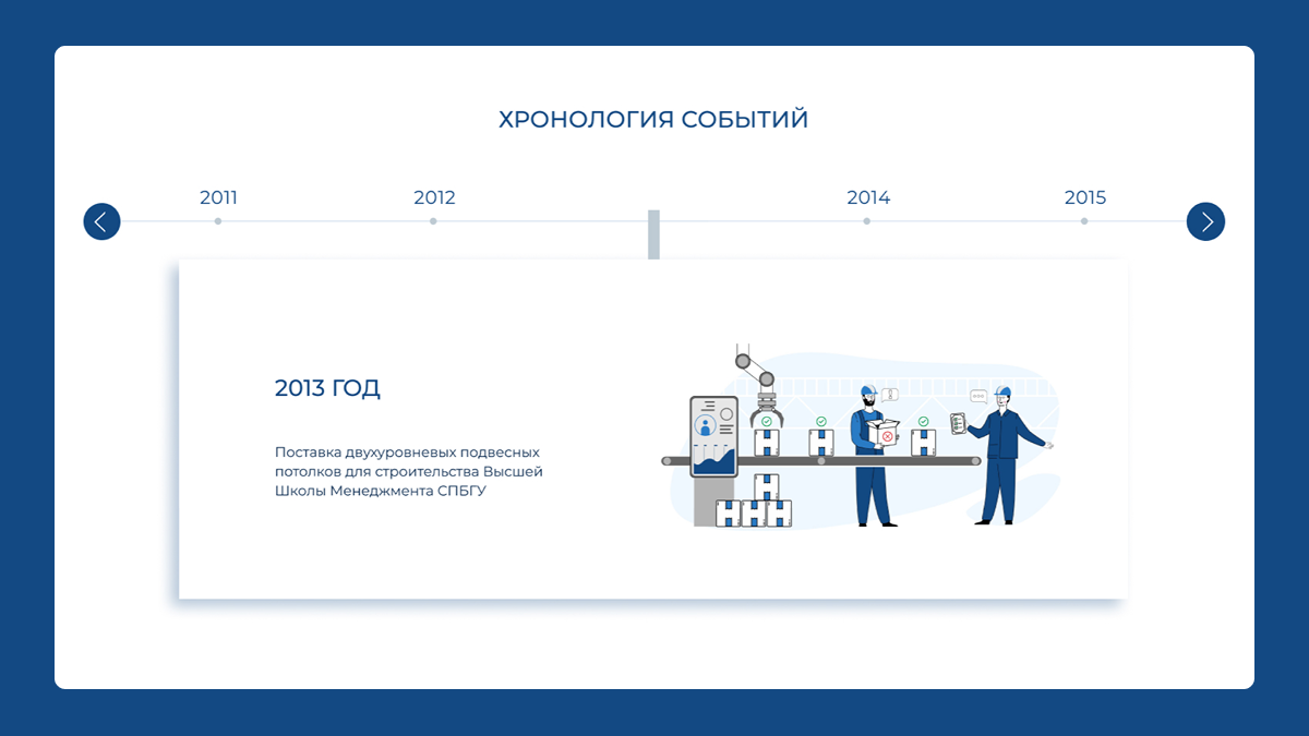 Провели несколько встреч с руководством клиента для уточнения задач и согласования ключевых решений. Аргументированно убедили отказаться от сложных визуальных эффектов, чтобы повысить удобство использования сайта и его скорость загрузки.